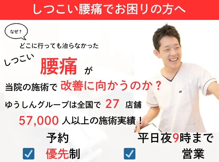 もしあなたが腰痛でお悩みなら、一人で悩まずにぜひ当院まで気軽にご相談ください。